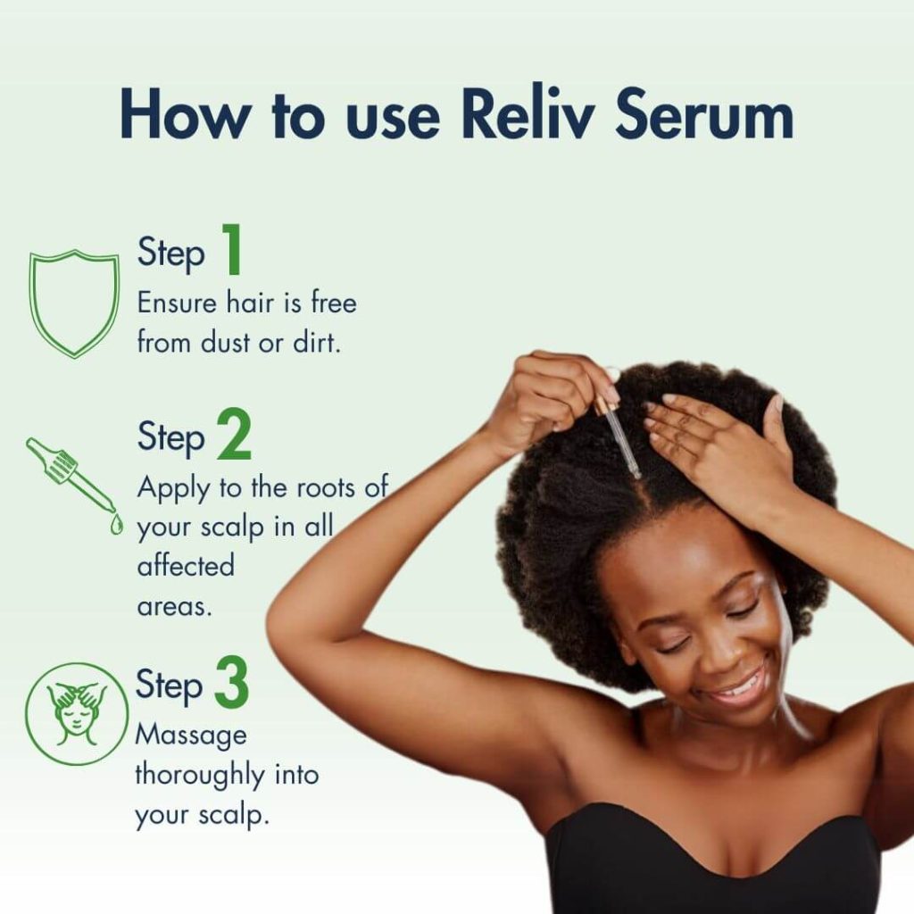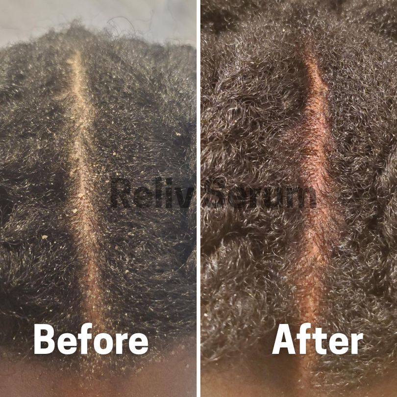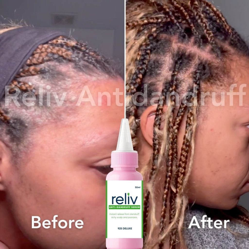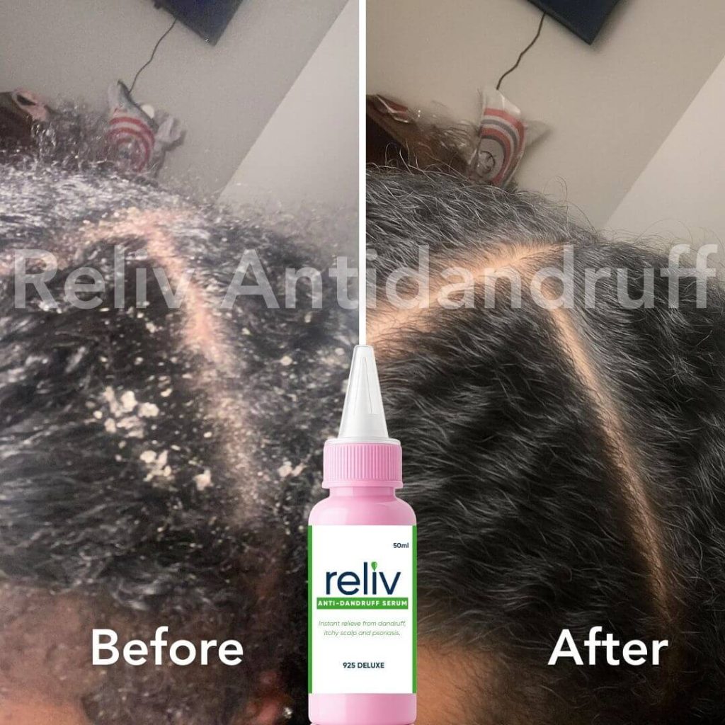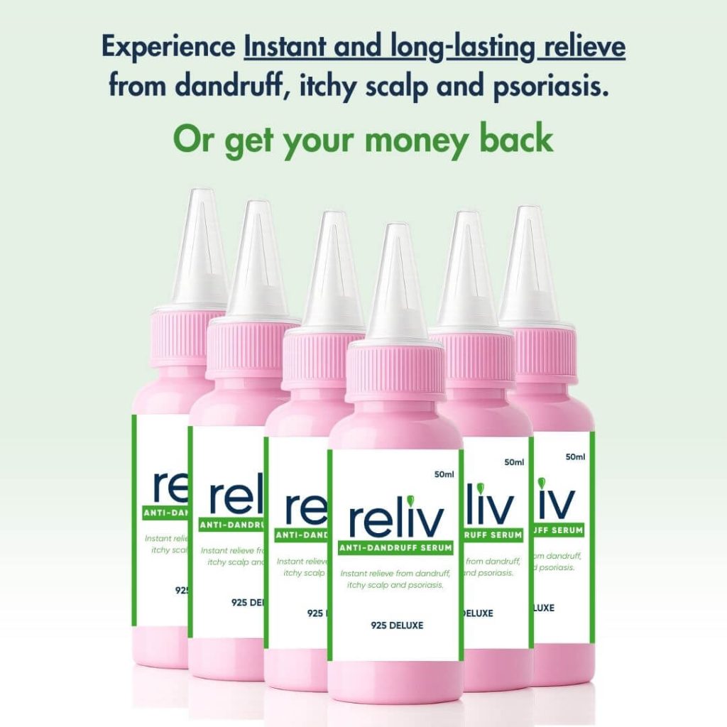 Reliv calms the irritated, inflamed scalp so dandruff doesn’t get reactivated.